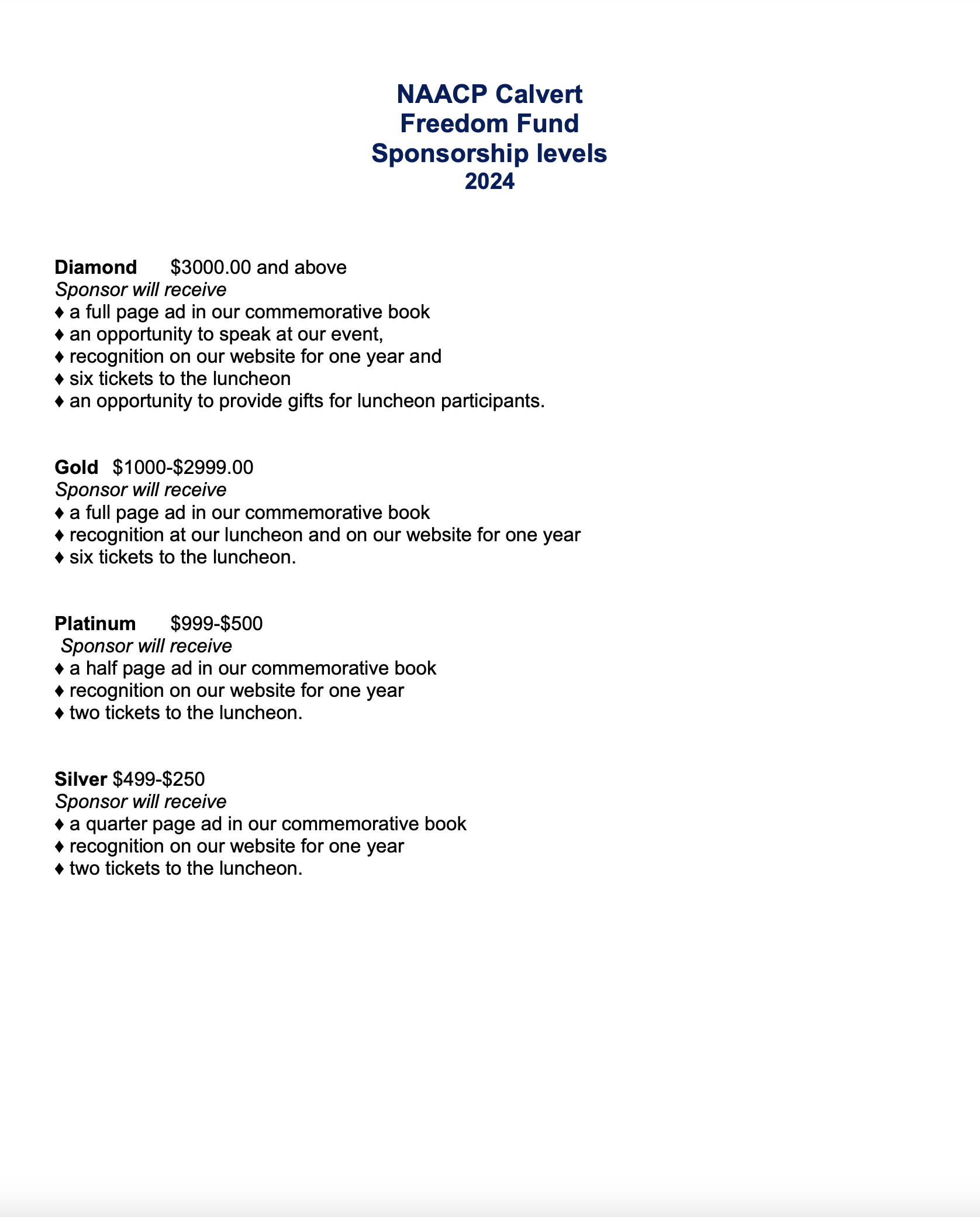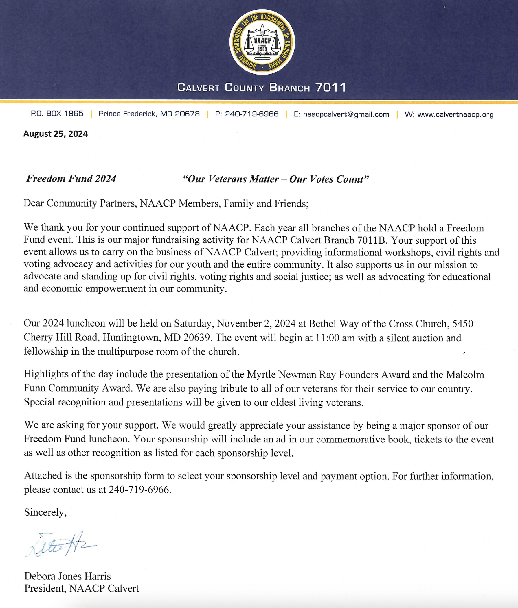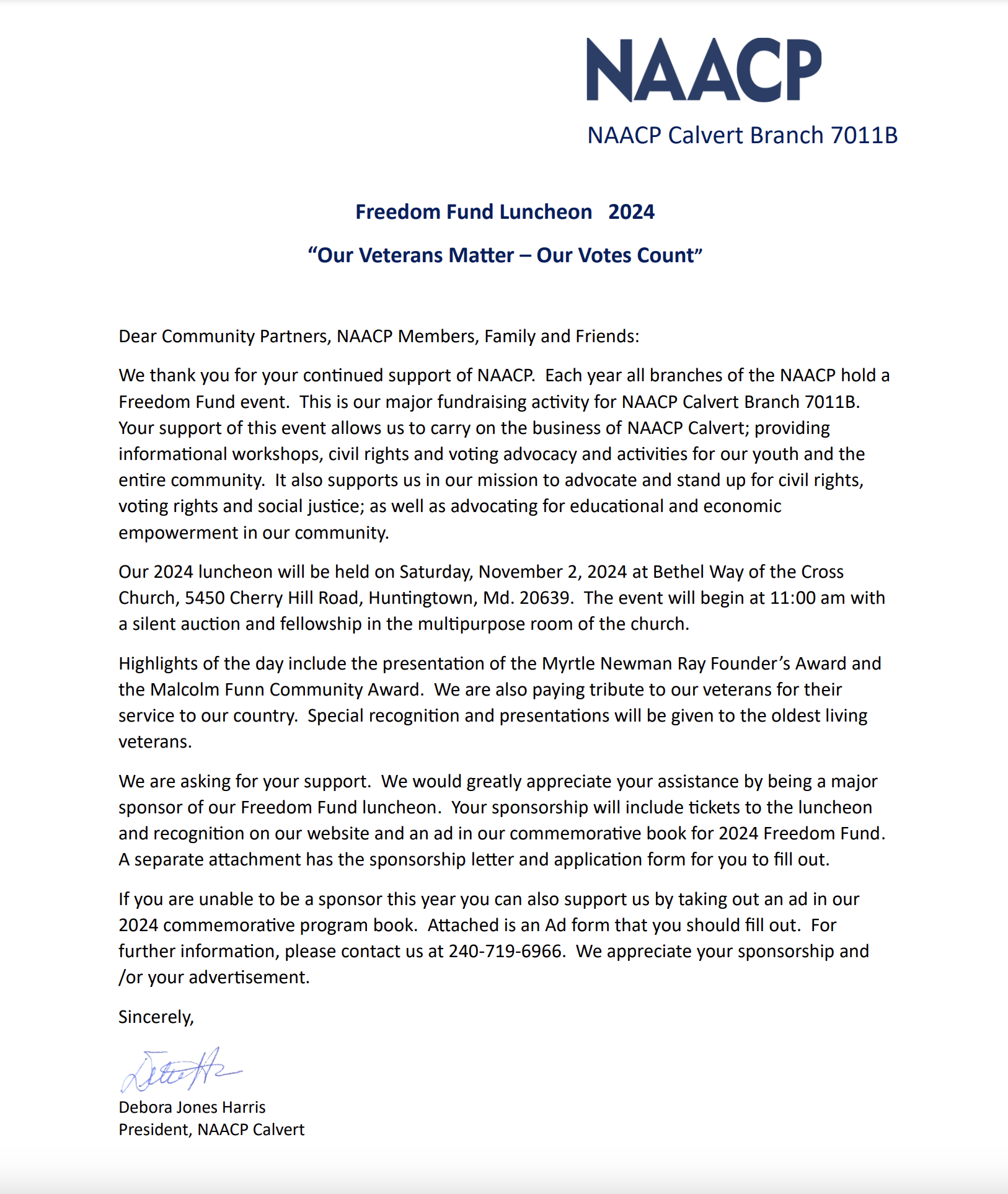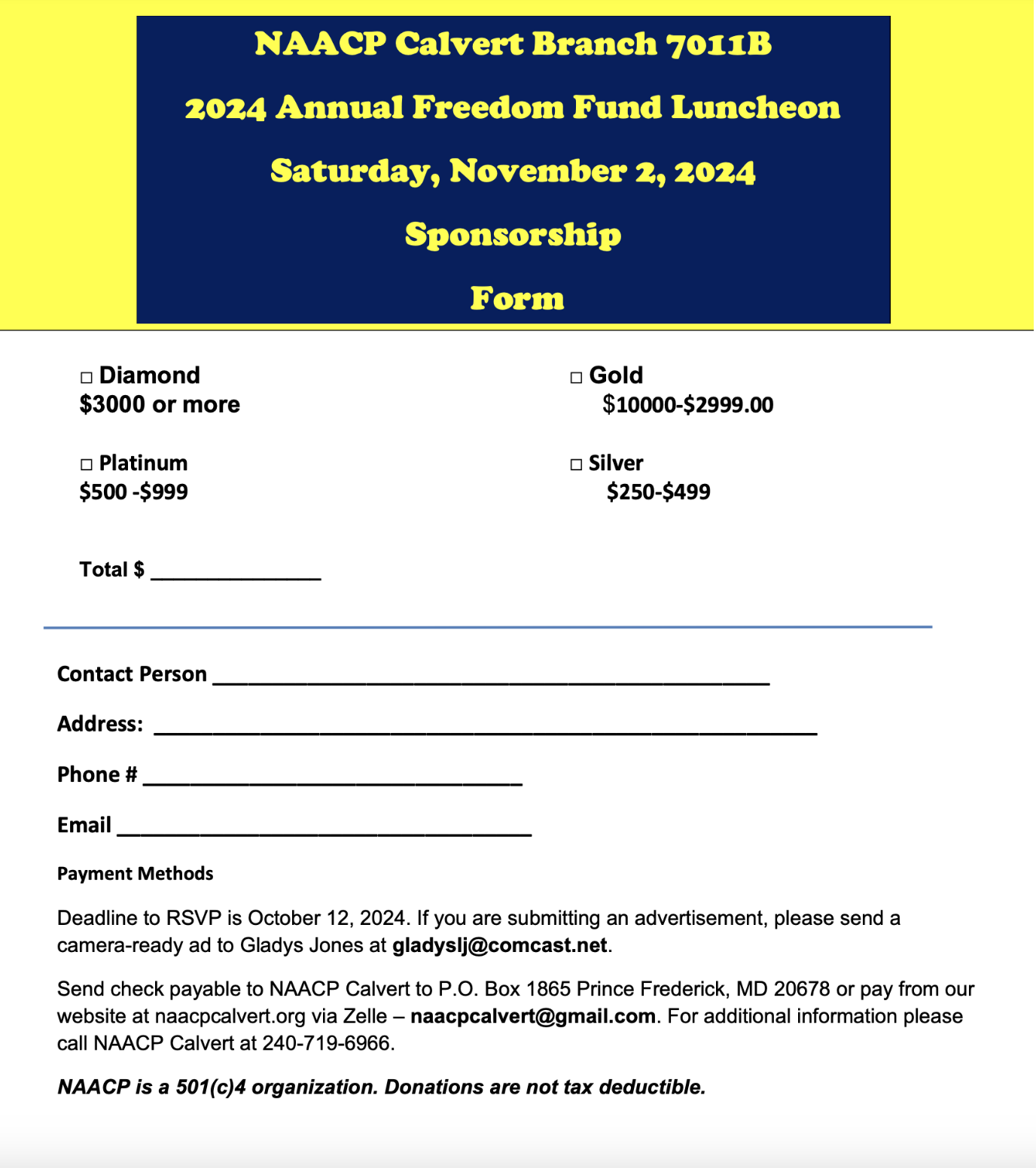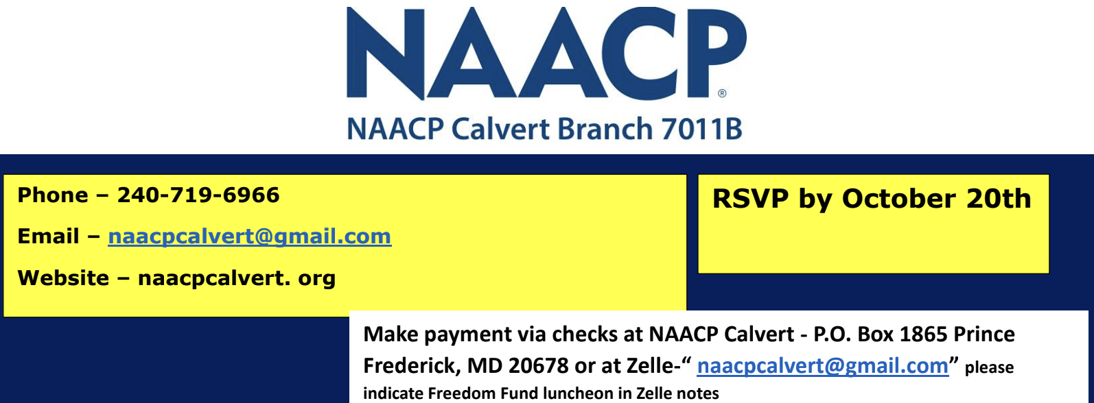 Save The Date! NAACP Calvert Annual Freedom Fund Luncheon